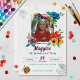 Kute och lekfull konst och hantverksflickans fotofödelsedagsinbjudan med en ljus hatt som dekoreras med blommor och löv, vattenfärgstommar och löv. Du kan ladda upp ett eget foto. Perfekten väljer för utformningen genom att skapa ett hörlursskott. Justera den under blomningens konstnärliga hatt.