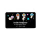 Adressetiketter med en bild av astronaut i genomskinliga hjälmar som flyter i rymden. Giraffe, mus, katt och kanin. Så förtjusande och roligt.