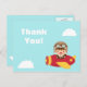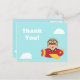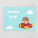 Ett färgstarkt och glatt tack för att du hälsar på kortet! Det kommer med en söt pojke i en flygbutik med stora glasögon och hatt. Pojken flyger glatt lite rött och gult flygplan bland molnen. Anpassa enkelt med ditt meddelande i kortets insida. Insidan av kortet har en flygande logotyp av stjärna och vingar.