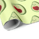 Tecknad stil söt avokado och röd hjärtbakgrund. Anpassningsbarnas dekorativa gåva som omsluter pappra rullar. Tanken på avocado älskare.