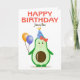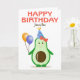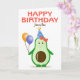 Det här "Grattis på födelsedagen"-kortet har en söt avocado med ballonger. Det är perfekt för alla som har en hälsosam livsstil i kärlek.