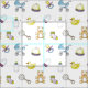 Cute mönster med baby: Teddy, gummiducky, nappar, baby flaska, barnvagn...