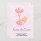 Spara datumkortet med en bra illustration av en liten brun baby med en liten gyllene krona. Bär med ballonger i en rosa hjärtfilt.