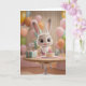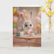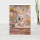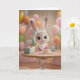 Cute Baby Bunny w/ Cake and Balloons 1st Birthday Kort