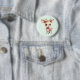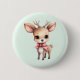 Button with an illustration of an adorable baby deer. Big eyes big ears with a large head and little brown antlers. Wearing a big red bow.