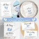 Tur tack för din dusch i pojke med "tack" i ett skript med snyggtar med svash och en blå vattenfärg på baby fötter. Anpassa ditt tackmeddelande eller lämna tomt för en handskriven anteckning.
