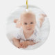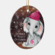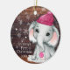 Skapa ett minnesmärke keepsaké-helgdag för en första jul i flicka med den här söta baby-elefanten med ett rosa-boskapshölje som håller en rosa julprydnad med vinter-snöflingor och snöfall mot bakgrund och personlig av rustiskt trä med NAMN FIRST CHRISTMAS och år på framsidan och ett fullt-blekt foto på baksidan. Kontakta designern via Zazzle-Chattan eller makeitaboutyoustore@gmail.com om du vill att designen ska ändras eller på en annan produkt.