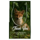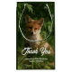Giftväska med ett foto med en söt liten baby räv med rött och vitt päls. Omringad med lush grönt löv och gräs.