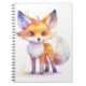 En mycket söt spiral-fotobärbar dator med en illustration av ett leende baby fox.