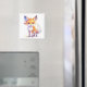 En mycket söt kvadratisk magnet med en illustration av ett leende baby räv.
