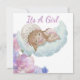 Celebrate the upcoming arrival of your precious little one with this whimsical and enchanting invitation. Featuring a sweet, hand-drawn illustration of a baby girl peacefully sleeping on a soft, fluffy cloud, this design is framed by a delicate border of watercolor flowers in shades of lavender, purple, and soft pink.