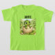An adorable custom name Dinosaur t-shirt! Featuring a cheerful baby Dinosaur hatching from its egg in a lush jungle setting. this design is perfect for kids who love Dinosaurs and bright, playful artwork.