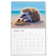Kalendern innehåller tolv färgfulla månader av söta hedgehogs och ätliga baby hedgehog på stranden.