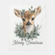 Sprid helgdag gläds åt den här vackra julhelgen i baby hjort. Med en ljuv beklädnad omgiven av en fektiv grönt, ett ömtåligt snöflingor och det hjärtliga budskapet "God jul", är denna charmerande skogsdesign perfekt för familj, vänner eller natur älskare. En mysigt, vismisk design som fångar vintersäsongens magi. Perfekt för helgdag dekoration, julteman för skogar eller någon som kärlek söta djur.