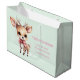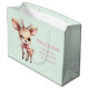 Giftväska med en illustration av ett vackert baby hjort. Stora ögon med stort öron med stort huvud och små bruna antenner. Med en stor röd båge.