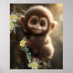 Cute Baby Monkey sitta vid Träd Gula blommor Poster