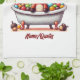 A cheerful and whimsical cartoon illustration featuring an adorable baby moose enjoying bath time in a classic claw-foot bathtub. Surrounded by colorful round bath elements, playful clouds, and charming acorns, this artwork brings warmth, humor, and cozy vibes to any product.