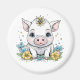 Cute Baby Pig in Flowers Tecknad Magnet