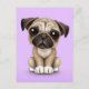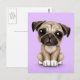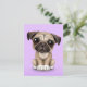 Cute Baby Pug Puppy Hund på Lila Vykort
