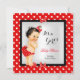 Cute Baby Shower, Red and White Polka dots för ett flicka. Svart trim, Röda och vita Polka dots-röda bögar. Söt vintage söt babydusch. Brunette Baby Shower
