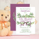En inbjudan till en babyåkare designad i färg av mjuk lila och grönt på vit bakgrund med texten: Oh Baby! Baksidan är en solid matchande lila med text: Baby Shower - Oh Baby! i grönt löv accent. Om du vill anpassa texten sätter du helt enkelt in mor namn och alla duschdetaljer i vår enkla mall och ersätter exemplet. Det är snabbt och enkelt.