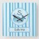 Cute Baby Whale Blue Stripes Fyrkantig Klocka
