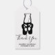 Tack för märkrn med en svart och vit illustration av en balettdansare i nedre ben och på balett tofflor, som står på tårna, en pointe.