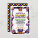 Det här redigerbara Halloween fest-inbjudningskortet har söta monster, pumpor och behandlar lila, orange, rosa och grönt på vit bakgrund. Det är perfekt för en Spooktaculär födelsedagsfest för en pojke eller flicka, eller något annat barns Halloween fest eller evenemang.