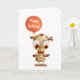 Cute-födelsedagskort med brunt uggla som håller en ballong som säger grattis på födelsedagen! Anpassa texten med ett annat meddelande om det behövs. Illustrerad och designad av Patricia Alvarez.
