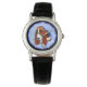 Det här är en söt klocka för alla som kärlekar de där ädelbara greven! Den har en tecknad med en brun, vit och svart hund, komplett med ledsen ögon och droopy, lång öron. Bilden placeras på en blå bakgrund med två toningar, omgiven av en blå ring. De vita numren är anpassade, så om du vill ta bort dem kan du göra det genom att ta bort fält.