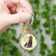 Cute beagle puppe cudddling morsa rund silverfärgad nyckelring