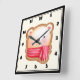 Cute Bear Ansikte i en Red Scarf-julkaka Fyrkantig Klocka