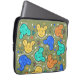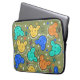 En fetstilt och pulserande abstrakt-blomma med geometriska petalformer i örrött och lila på svart bakgrund. Perfekt för dem som kärlek bohemian, stamkonst och etnisk inspirerad konst. Underbar för klistermärken, väggkonst, kläder och hemdekör.
