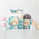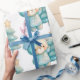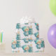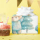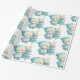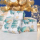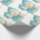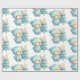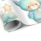 Svällning papper med en bra illustration. En mysigt björn med stjärnor och gnistor i päls. Stå bredvid en Julgran. Pastellblå grönt färg. Vit och söt.