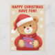 Sprid till ett häftigt munkavle med det här oemotståndligt söta vykortet! En charmerande nalle, som sitter i en mysigt röd tröja och julhatt, har ett älskvärt inslaget Julklapp. Kortet har en mjuk, varm bakgrund med fallande snöflingor, och innehåller det enkla, glatta budskapet: "LYCKLIG CHRISTMAS HAR ROLIGT!" Den här fina vattenfärgen stil är perfekten för att skicka sött, enkelt och lycklig hälsning till barn, vänner och familj i alla åldrar.