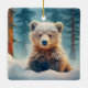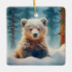 Cute Bear Unge i Snö täckte skog Julgransprydnad Keramik