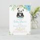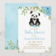 Den vackra blågröna blommigten Eucalyptus vattenfärgen baby panda björn, vi kan vänta tidigt! Det är en inbjudan till babydusch. Du kan anpassa den här söta inbjudan med din egen text.