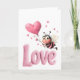 Cute Bee Fluffy Pink Love Heart Balloon Design Helgkort