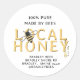 En informell märkning för små biodlare som föredrar en underskattad märkning. Vit etikett med en realistisk tittar honungsdropp på ord LOCAL HONEY. En söt honungsbi som flyger över ord på etiketten kommer säkert att ta med några sjömil.