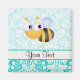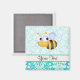Cute Bee; Teal Damask Pattern Magnet