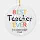 Personligens lärarkänning jultomas prydnadsföremål med ord "bästa lärare någonsin" i en färgstark typografisk utformning, deras namn och året därpå.