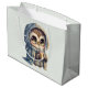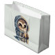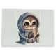 Giftpåse med en kawaii-illustration av ett storögd uggla i en vinterrobe och en scarf med en hett kaffe.