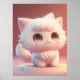 Cute Big Ögon Fluffy White Cat Poster