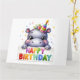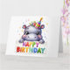 Grattis på födelsedagen-kort. Gnud, avskyvärd Hippopotamus med en party hatt. Ett vackert barns födelsedagskort. Det här kortet är tomt för ditt eget meddelande. Finns även som en digital nedladdning för överföring till andra produkter.