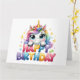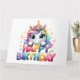 Grattis på födelsedagen-kort. Cute, Regnbåge Unicorn med party hatt. Ett vackert barns födelsedagskort. Det här kortet är tomt för ditt eget meddelande. Finns även som en digital nedladdning för överföring till andra produkter.