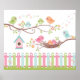 Fågelscen med baby chickar i ett bo, fågelhus och ett sött, färdigt staket.