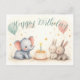 Cute Birthday Hälsning med djurvänner Helg Vykort