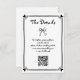 Kylt, svart och vitt, Hand plockade klosterkort för Fransk återcirkulation stil bröllop verticl inneslutningskort. Det här laddande, vertikalt orienterade kortet för djurutrymmet har en handdragen svartvit klocka som är utformad med en vismisk Fransk stil. Kortet visar en lekfull illustration av en båge och en ram med hjärtan i hörnen, och innehåller "Information om ord". Det finns också en QR-kod som gör det möjligt för gästerna att enkelt få tillgång till ytterligare information om bröllop.