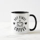 För kaffet älskare. Ge efter kaffe älskare på tillfälle. Svart och vitt kaffe älskare mugg med texten "Men första kaffe". Utformningen finns på en rad olika mugg-stilar - från kombinationsprogram (som passar in i mugg och hanterar färg) till ett enkelt, vitt mugg.
