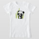 Vilken söt och förtjusande illustration av en svart och vit panda som bär sitta bland gröntens bambostjälkar i en liten grova, tittar lycklig, är vänlig och älskvärd.